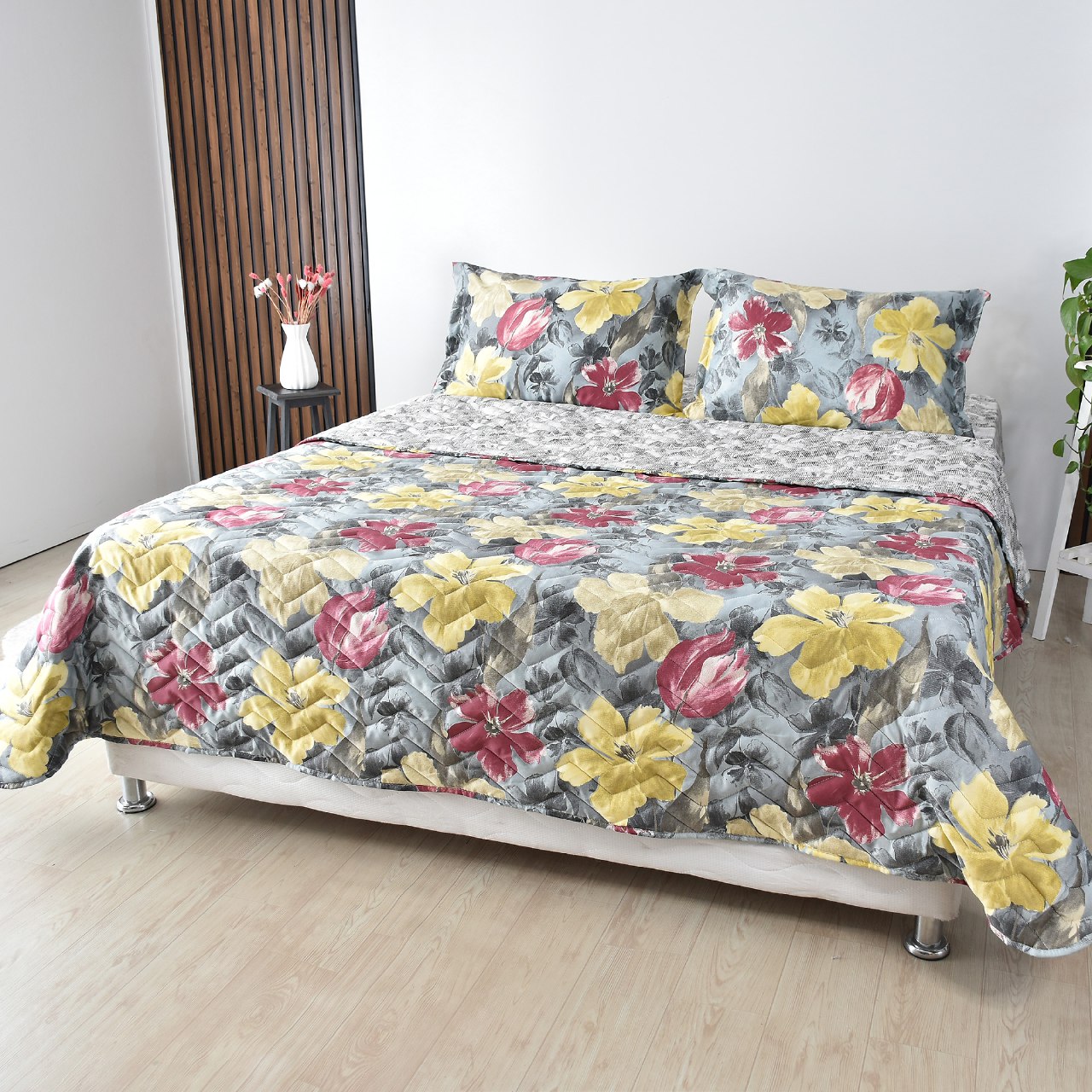 طرح نگار از پارچه پلی استر پنبه با تراکم بالا و درصد پنبه بیشتر (سری A از محصولات بومرنگ) در دو رنگ متنوع طوسی و کرم تولید شده است، روتختی های بهاره به صورت ست زیر و رو با الیاف سیلیکونه نازک پنبه دوزی شده و گزینه مناسبی برای فصول معتدل و گرم سال است. این کالا شامل یک روتختی مناسب تشک های دونفره (از سایز 140*200 تا 200*200) و دو عدد روبالشی می باشد.
